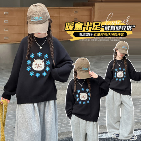 1*2下载视频“842加厚蓝花猫咪毛衣”