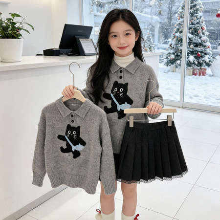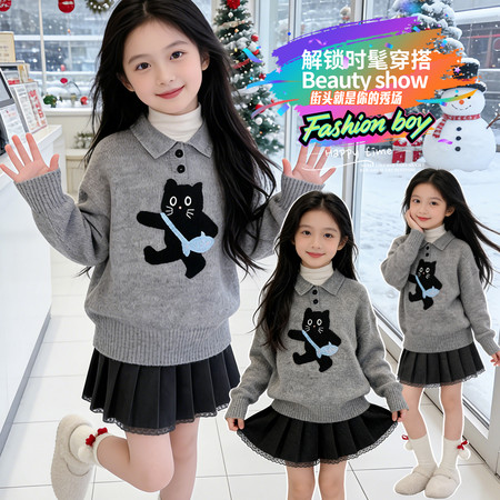 1*4收藏“972小猫加厚毛衣加绒毛呢裙套装”