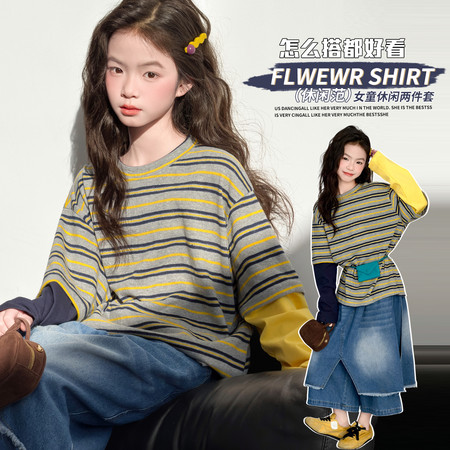 1*6下载视频“366拼色上衣假两件牛仔裙裤”